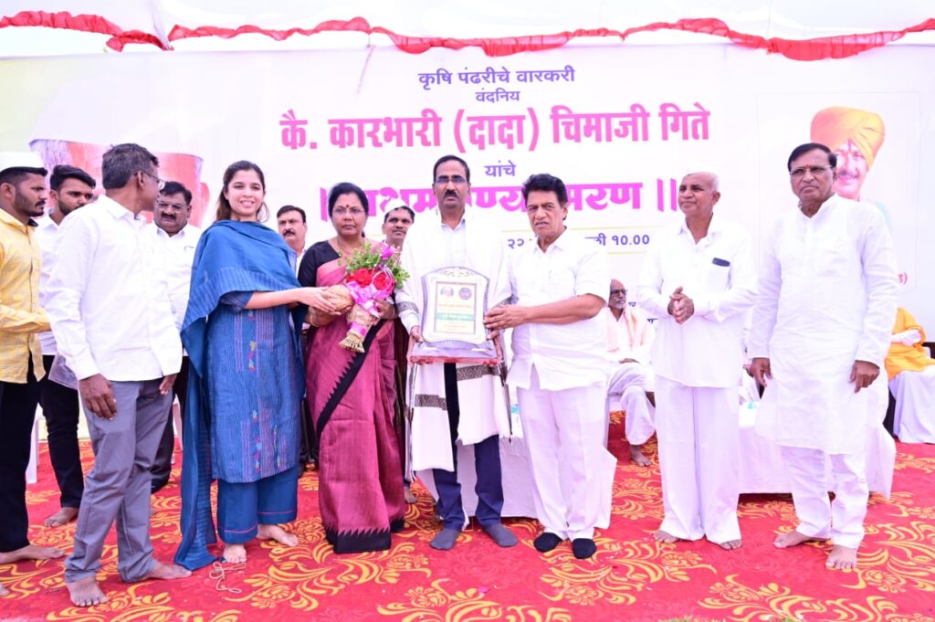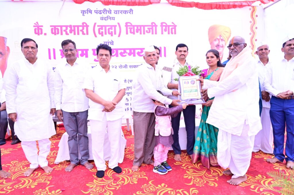 संस्कार, संस्कृती आणि संयम ह्या त्रिसूत्रीने मानवजातीच्या कल्याणासाठी झटणारे कारभारी दादा गिते हे शेतकऱ्यांचे मूर्तिमंत विद्यापीठ होते. त्यांचे अलौकिक मार्गदर्शन अनेक पिढ्यांसाठी उपयुक्त आहे. कारभारी ( दादा ) शिवार प्रतिष्ठानने दादांच्या नावाने दिलेल्या दोन्ही पुरस्कारांची उंची सर्वोच्च पुरस्कारापेक्षा मोठी आहे असे प्रतिपादन इगतपुरीचे आमदार हिरामण खोसकर यांनी केले. कारभारी ( दादा ) शिवार प्रतिष्ठान आयोजित कृषी विज्ञान पुरस्कार सोहळ्यात श्री. खोसकर बोलत होते. संगमनेर तालुक्यातील सोनोशी येथील प्रगतशील शेतकरी कारभारी ( दादा ) चिमाजी गीते यांच्या प्रथम स्मृतिप्रित्यर्थ बंगलोर येथील हॉर्टिकल्चर विभागाचे शास्त्रज्ञ डॉ. कृष्णा रेड्डी व जुन्नर तालुक्यातील ओतूर येथील प्रगतशील शेतकरी अजित घोलप यांना कृषी विज्ञान पुरस्कार वितरण करण्यात आला.