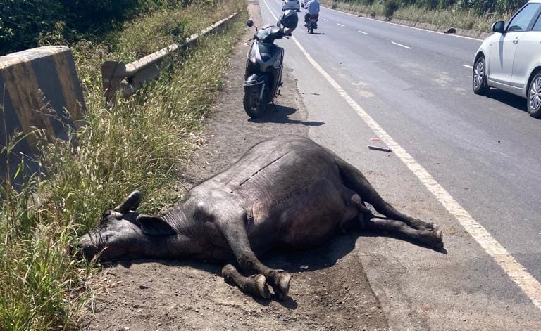 मुंबई आग्रा महामार्गावर अपघातांचे प्रमाण आता वाढू लागले आहे. अचानक जनावरे आणि कुत्रे रस्त्यावर आल्यामुळे सुद्धा अपघात घडत आहेत. यामुळे चिंतेत भर पडली असून आज दुपारी वाडीवऱ्हे कडून गोंदे दुमाला गावाकडे जाणाऱ्या मोटारसायकलला अपघात झाला. व्हीटीसी फाट्याजवळ खड्डा चुकवण्याच्या नादात हा अपघात झाला. यामध्ये ८ महिन्याची गरोदर महिला, बालक आणि तिचा पती असे 3 जण गंभीर जखमी झाले आहेत. जगद्गुरू नरेंद्राचार्य महाराज संस्थान नानिज धाम मोफत रुग्णवाहिकेचे रुग्णमित्र निवृत्ती पाटील गुंड यांनी समयसुचकतेने अपघातस्थळी दाखल होऊन जखमींना नाशिकच्या शासकीय रुग्णालयात दाखल केले आहे. गरोदर महिला निशा दीपक मोहिते वय 23, दीपक गजेंद्र मोहिते वय 30, राहुल दीपक मोहिते वय 8 सर्व राहणार गोंदे ( मूळ राहणार जळगाव ) अशी जखमींची नावे आहेत. दुसऱ्या अपघातात आनंदवन सोसायटीजवळ महामार्गावर अज्ञात वाहनाने धडक दिल्याने एक म्हैस ठार झाली आहे.