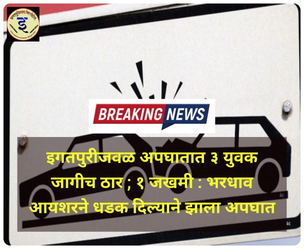 इगतपुरीजवळ अपघातात ३ युवक जागीच ठार ; १ जखमी : भरधाव आयशरने धडक दिल्याने झाला अपघात