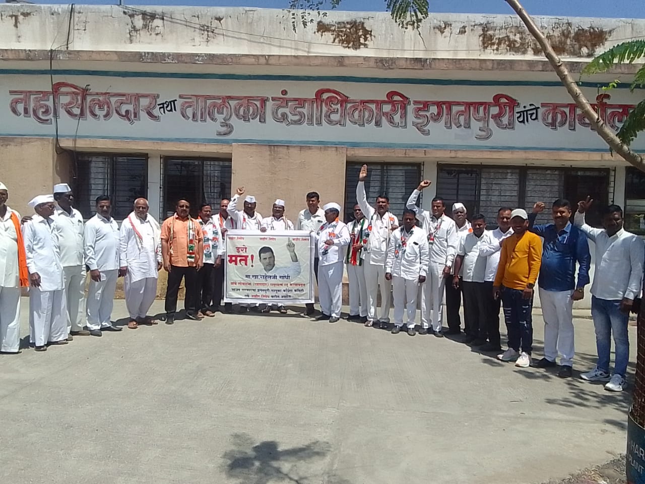 इगतपुरीनामा न्यूज, दि. २७ – इगतपुरी तालुक्यात काँग्रेस नेते राहुल गांधी यांची खासदारकी रद्द करण्याच्या निर्णयाचा तीव्र निषेध व्यक्त करण्यात आला. प्रदेशाध्यक्ष नाना पटोले यांच्या आदेशान्वये इगतपुरीचे आमदार हिरामण खोसकर, मविप्रचे संचालक ॲड. संदीप गुळवे यांच्या नेतृत्वाख़ाली इगतपुरीचे तहसीलदार परमेश्वर कासुळे यांना काँग्रेस कमिटीच्या वतीने निवेदन देण्यात आले. निवेदनात नमूद आहे की, डॉ. बाबासाहेब आंबेडकर यांनी पाया रचलेली राज्यघटना आणि लोकशाही व्यवस्थेची हत्या करण्याचे षडयंत्र केंद्रातील मोदी सरकार करीत आहे. या दडपशाहीचा निषेध करण्यासाठी इगतपुरी तालुका काँग्रेस कमिटीचे पदाधिकारी मोठ्या संख्येने उपस्थित होते. यावेळी कार्यकर्त्यांनी विविध घोषणा देऊन निषेध केला. काँग्रेस कमिटीचे इगतपुरी तालुकाध्यक्ष रमेश सदाशिव जाधव, उपाध्यक्ष लकी गोवर्धने, उत्तमराव शिंदे शेतकरी नेते पांडुरंगमामा शिंदे, खरेदी विक्री संघाचे व्हॉइस चेअरमन जयराम धांडे, कचरू पाटील शिंदे, संतोष सोनवणे, रामदास बाबा मालुंजकर, सुदाम भोर, उत्तम शिंदे, नामदेव शिंदे, दिलीप जाधव, अरुण गायकर, संपत मुसळे, सुरेश धोंगडे, योगेश सहाणे, पांडुरंग कोकणे, चंदूशेठ किर्वे, प्रकाश पंडित, सामाजिक कार्यकर्ते प्रशांत जगताप आदी कार्यकर्ते उपस्थित होते.