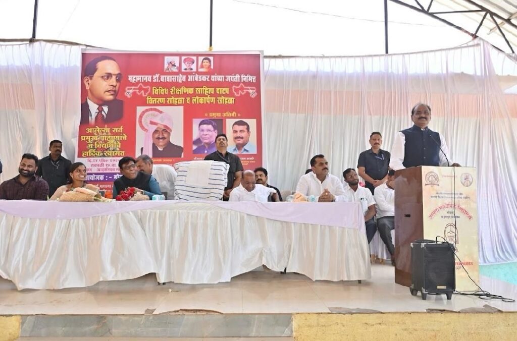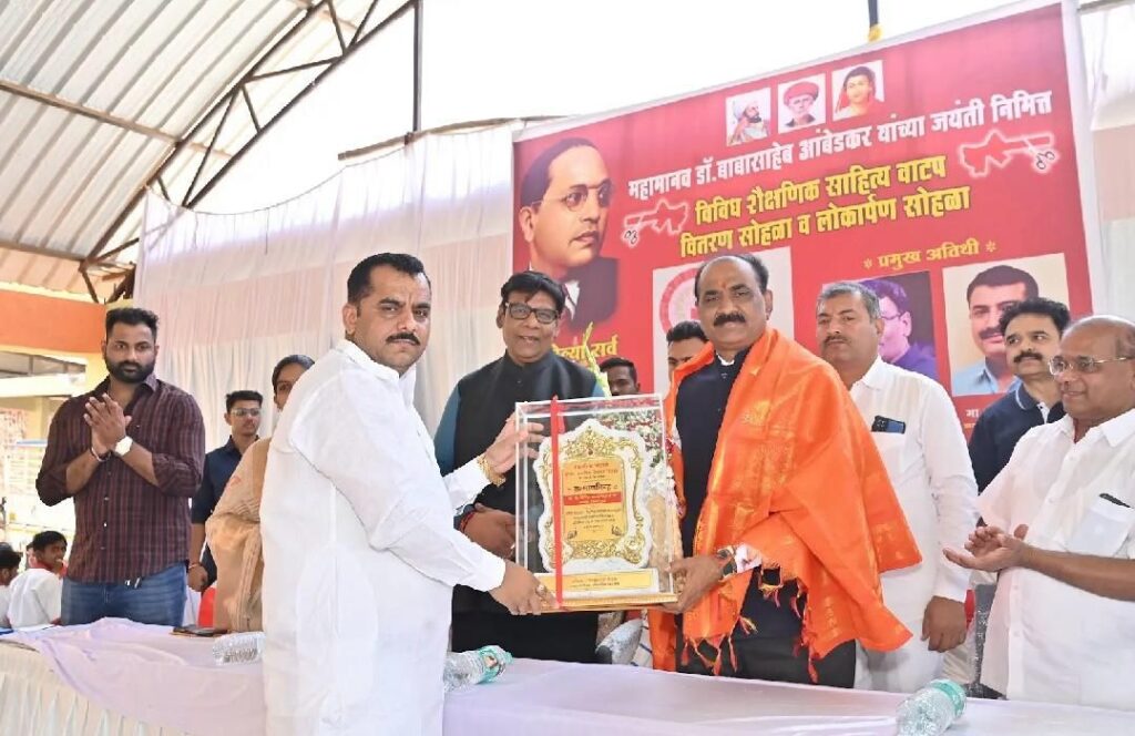 महामानव भारतरत्न डॉ. बाबासाहेब आंबेडकर यांच्या जयंती निमित्त विविध शैक्षणिक साहित्य वितरण आणि विकासकामांच्या लोकार्पण सोहळ्यात मार्गदर्शन करतांना ते बोलत होते. प्रमुख पाहुणे म्हणून चित्रपट निर्माते मुंबईचे उद्योजक गणपत कोठारी उपस्थित होते. कार्यक्रमाचे आयोजक रोटरी क्लब ऑफ नाशिक नाइन हिल्सचे अध्यक्ष गोरख बोडके यांनी प्रास्ताविक केले. सरपंच शैला आहेर यांनी पाहुण्यांचे स्वागत केले. मुंबई हायकोर्टाचे न्यायमूर्ती गोविंदराव सानप, चित्रपट निर्माते मुंबईचे उद्योजक गणपत कोठारी, रोटरी क्लब ऑफ नाशिक नाइन हिल्सचे अध्यक्ष गोरख बोडके यांच्या हस्ते क्रांतीसुर्य महात्मा ज्योतिबा फुले अभ्यासिकेत स्पर्धा परिक्षा पुस्तके वाटप करण्यात आली. विद्यार्थ्यांना मोफत ३५० गणवेश, १०० सायकली, मोबाईल टॅब व मोफत बुटसेट वाटप, विद्यार्थिनींसाठी २ सॅनिटरी पॅड मशिन, शाळेसाठी १० संगणक संच, विद्यार्थ्यांसाठी शुद्ध पिण्याच्या पाण्यासाठी वॉटर फिल्टर व वॉटर कुलर, विद्यार्थ्यांना बसण्यासाठी बँच आणि गावातील ग्रामस्थांना बसण्यासाठी १२ बाकांचे वाटप करण्यात आले. यावेळी युवक, विद्यार्थी आणि ग्रामस्थ मोठ्या संख्येने उपस्थित होते.