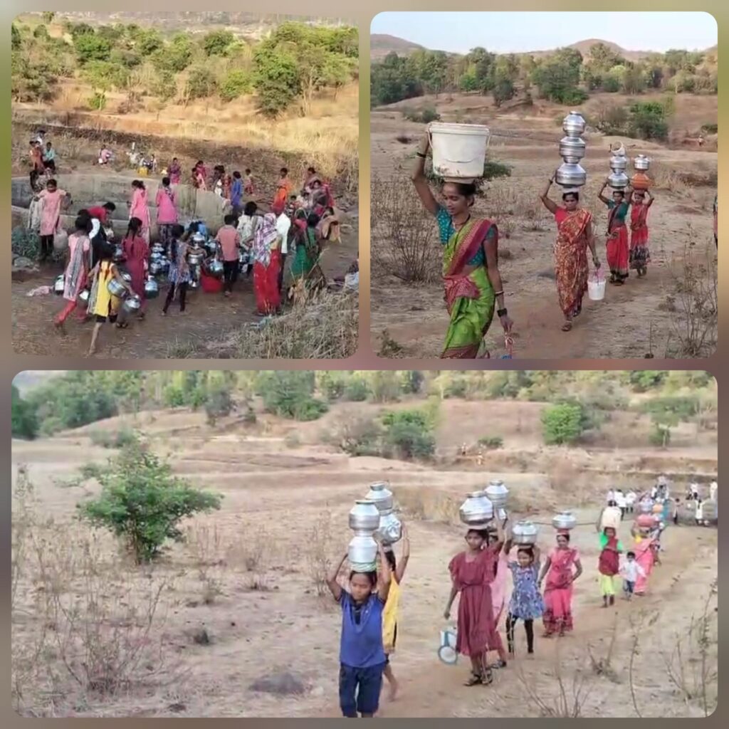 इगतपुरीनामा न्यूज – इगतपुरी तालुक्यातील आवळखेड ग्रामपंचायत हद्दीतील ग्रामस्थांना भीषण पाणीटंचाईचा सामना करावा लागत आहे. शालेय विद्यार्थिनी, महिला आणि लहान मुले देखील पाण्यासाठी तीन किलोमीटर अंतर पार करत, खोल दऱ्याखोऱ्यातून पायवाटेने गढूळ विहिरीकडे प्रवास करत आहेत. शिकण्याच्या वयात असलेल्या चिमुकल्यांना पुस्तके हातात न धरता पाणी भरण्याची कसरत करावी लागत आहे, ही बाब खरोखरच काळजाला भिडणारी आहे. परीक्षेच्या काळात शालेय विद्यार्थी पाणी भरत असल्याने ह्याचा दुष्परिणाम शैक्षणिक गुणवत्तेवर होणार आहे. या गंभीर समस्येकडे इगतपुरीचे आमदार हिरामण खोसकर आणि नाशिकचे खासदार राजाभाऊ वाजे यांच्यासह प्रशासनाचे पूर्णतः दुर्लक्ष होत असल्याचा ग्रामस्थांचा आरोप आहे.