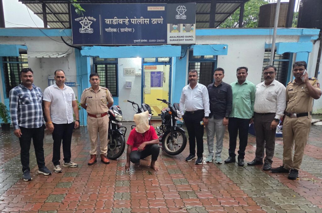 इगतपुरीनामा न्यूज – स्थानिक गुन्हे शाखा व वाडीवऱ्हे पोलीस स्टेशन यांच्या संयुक्त नाकाबंदी कारवाई दरम्यान असताना गुप्त बातमीनुसार एक इसम वाडीवऱ्हे परिसरात चोरीची मोटरसायकल घेऊन वावरत आहे. ह्या बातमी नुसार नमूद पथकाने सापळा रचून एक प्लॅटिना वरील इसमाचा पाठलाग करून त्याच्या कब्जातील चोरीची मोटरसायकल हस्तगत केली. ह्या चोरी बाबत देवळा पोलीस ठाणे येथे गुन्हा दाखल आहे. त्याच्याकडे सखोल चौकशी केली असता त्याने आणखी दोन मोटरसायकल त्याचे ताब्यातून काढून दिल्या. पोलीस अधीक्षक बाळासाहेब पाटील, अप्पर पोलीस अधीक्षक आदित्य मिरखेलकर यांच्या मार्गदर्शनखाली स्थानिक गुन्हा शाखेचे पोलीस निरीक्षक रवींद्र मगर, वाडीवऱ्हेचे पोलीस निरीक्षक हेमंतकुमार भामरे, तपास पथकातील प्रविण काकड, शरद धात्रक, ज्ञानेश्वर सानप, शिरीष गांगुर्डे, उल्हास धोंगडे यांनी कारवाई करून आरोपी अटक केले. आरोपीकडून ३ मोटरसायकल हस्तगत केल्या आहे. मयूर अनिल जाधव, रा. गंगापूर गाव, गोवर्धन ता. जि. नाशिक असे आरोपीचे नाव आहे.
