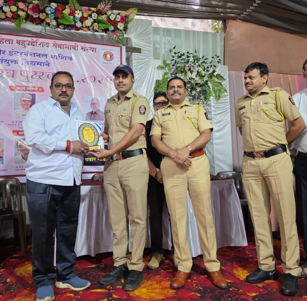 इगतपुरीनामा न्यूज – मनु मानसी महिला बहुउद्देशिय सेवाभावी संस्था आणि महावीर इंटरनॅशनल नाशिक यांच्या वतीने २०२५ चा दिला जाणारा जीवन गौरव पुरस्कार इगतपुरीचे वनपरिमंडळ अधिकारी भाऊसाहेब राव यांना मान्यवरांच्या हस्ते सन्मानपूर्वक प्रदान करण्यात आला. प्रमुख अतिथी डॉ. शेफाली भुजबळ, पोलीस निरीक्षक सुनील पवार, महंत भक्ती चरणदास महाराज, राम डावरे, विठ्ठलसिंग ठाकरे, मनू मानसी संस्थापिका अध्यक्ष मेघाताई शिंपी, महावीर इंटरनॅशनलचे अनिल नहार, कार्याध्यक्ष मंजू जाखडी आदी मान्यवरांच्या हस्ते जीवनगौरव पुरस्कार देण्यात आल्याने त्यांचे अभिनंदन होत आहे. भाऊसाहेब राव हे १९९९ पासून वनविभागात कार्यरत असून जीव धोक्यात घालून त्यांनी अनेक धाडसी कामे केली आहेत. वन्यजीव संरक्षण, वनतळे, जल, मृदु संधारण रोप वन, वृक्ष लागवड वन्यजीव जनजागृती, पशुधन नुकसान भरपाई मिळवून देणे आदी कामासाठी त्यांचा नेहमीच पुढाकार असतो. वन्यप्राणी तस्कर यांना आळा घालुन फरार आरोपी यांना २४ तासात शोधुन आणुन जेरबंद करणारे वन परिमंडळ भाऊसाहेब राव यांना जीवनगौरव पुरस्कार मिळाल्याबद्दल सर्वत्र अभिनंदन होत आहे.