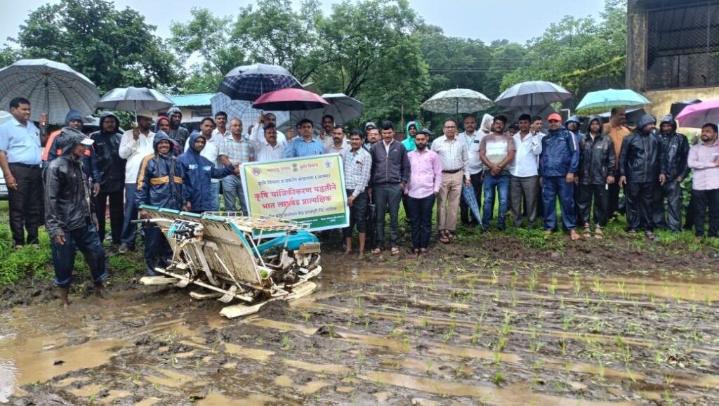 इगतपुरीनामा न्यूज – राज्याचे कृषिमंत्री ना. माणिकराव कोकाटे यांच्या संकल्पनेतून कृषी विभाग आणि प्रकल्प संचालक आत्मा यांच्या संयुक्त विद्यमाने विभागीय भात संशोधन केंद्र, इगतपुरीच्या प्रक्षेत्रावर यंत्रा द्वारे भात लागवडीचे प्रात्यक्षिक घेण्यात आले. त्र्यंबकेश्वर तालुक्यातील तोरंगणचे शेतकरी शांताराम जाधव यांनी त्यांच्या भात लावणी यंत्राद्वारे उपस्थित शेतकऱ्यांना भाताची आवणी करून दाखवली. यावेळी श्री. जाधव यांनी शेतकऱ्यांच्या शंका आणि प्रश्नांना लागवड प्रात्याक्षिकावेळी उत्तरे देऊन समाधान केले. यंत्राद्वारे भात लागवड कशी फायदेशीर आहे हे त्यांनी यावेळी उदाहरणासह दाखवून दिले. प्रात्याक्षिक कार्यक्रमानंतर विभागीय कृषी संशोधन केंद्र येथील सभागृहात प्रकल्प संचालक आत्मा नाशिक यांनी शेतकऱ्यांना यंत्रा द्वारे भात लागवडीचे फायदे सांगितले, यामध्ये पारंपरीक पद्धतीपेक्षा बियाणे कमी लागते, रोपांची मर कमी होते. लागवड खर्चात निम्मी टक्के बचत होते. भात उत्पादनात चांगली वाढ होते. मजुरांची संख्या कमी लागते. एका दिवसात ३ ते ४ एकर भात लागवड होते. शेतकऱ्याला हव्या त्या अंतरावर लागवड करता येते. शेतकऱ्यांची एकाच वेळी येणारी लागवड यामुळे मजुरांची टंचाई असते. यावर पर्याय म्हणून यंत्रा द्वारे भात लागवड करता येते. यावेळी लागवडीचे विविध व्हिडिओ दाखवण्यात आले. उप विभागीय कृषी अधिकारी रवींद्र वाघ यांनी यंत्रासाठी नानाजी देशमुख प्रकल्पातून अनुदानाचा लाभ घेण्याचे आवाहन केले. प्रास्ताविक इगतपुरीचे तालुका कृषी अधिकारी रामदास मडके यांनी, आभार सहायक कृषी अधीकारी हरीश चव्हाण यांनी मानले. कार्यक्रमासाठी प्रकल्प संचालक आत्मा नाशिक अभिमन्यू काशीद, उप विभागीय कृषी अधिकारी रवींद्र वाघ,तालुका कृषी अधिकारी रामदास मडके, विभागीय कृषी संशोधन केंद्र इगतपुरी येथील डॉ. अविनाश कोळगे, डॉ. सुरेश परदेशी, डॉ. दीपक डामसे, डॉ. संदीप निकम, त्र्यंबकेश्वर तालुका कृषी अधिकारी गणेश बांबळे, मंडळ कृषी अधिकारी संजय पाटील, अजय खैरनार, सागर सिनारे, विजय जाधव,राजेंद्र चव्हाण, अरुण राऊत आणि तालुक्यातील शेतकरी उपस्थित होते.