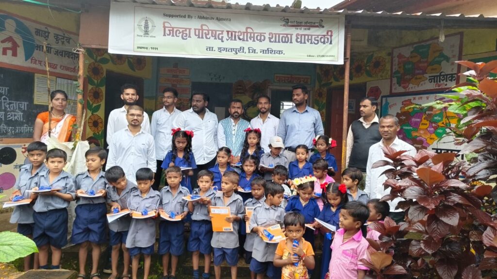 इगतपुरीनामा न्यूज – इगतपुरी तालुक्यातील अतिदुर्गम धामडकी जिल्हा परिषद प्राथमिक शाळेत स्वातंत्र्य दिन मोठ्या उत्साहात साजरा झाला. गावातून सकाळी जनजागृती प्रभात फेरी काढण्यात आली. यामध्ये सर्व ग्रामस्थांनी उत्स्फूर्त सहभाग नोंदवला. शालेय आवारात गोकुळ आगिवले यांच्या हस्ते ध्वजारोहण सोहळा पार पडला. मुख्याध्यापक प्रमोद परदेशी यांनी कार्यक्रमाचे प्रास्ताविक केले. दत्तू निसरड यांनी कार्यक्रमादरम्यान अंमली पदार्थ विरोधी शपथ सर्व विद्यार्थी व ग्रामस्थांकडून घेतली. शाळेतील मुख्यमंत्री कार्य प्रशिक्षणार्थी वंदना भगत यांनी विद्यार्थ्यांकडून कवायत प्रात्यक्षिक करुन घेतले. नाशिक येथील अश्विन ननावरे, महेंद्रसिंग, चेतन मोरे, आदित्य निकळे, युवराज शिंदे, विनायक डमाळे आणि यश निखळे यांनी ‘हर घर झेंडा’ उपक्रमांतर्गत सर्व विद्यार्थी व ग्रामस्थांना राष्ट्रीय ध्वज वाटप केले. शाळेतील सर्व विद्यार्थ्यांना वही पेन देण्यात आले. ग्रामस्थ व विद्यार्थ्यांना खाऊ वाटप करण्यात आले. कार्यक्रमाच्या शेवटी मुख्याध्यापक प्रमोद परदेशी यांनी सर्व उपस्थितांचे आभार मानले. या सोहळ्यास खेमचंद आगिवले, बबन आगिवले, चांगुणा आगिवले, भारत आगिवले, लहानू आगिवले, उल्हास तेलम, ग्रामस्थ यांनी बहुसंख्येने उपस्थित राहून स्वातंत्र्य दिनाचा आनंद साजरा केला.