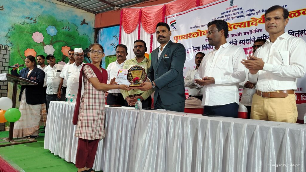 इगतपुरीनामा न्यूज : राजमाता अहिल्यादेवी होळकर त्रिशताब्दी जन्मवर्षाच्या निमित्ताने इतर मागास आणि बहुजन कल्याण विभागाच्या वतीने नाशिक जिल्ह्यातील विजाभज आश्रमशाळेतील विद्यार्थ्यांसाठी विविध स्पर्धांचे आयोजन करण्यात आले होते. इगतपुरी येथील महाराष्ट्र भटक्या विमुक्त जाती संघ संचलित संजीवनी माध्यमिक आश्रमशाळेची विद्यार्थिनी सोनाक्षी कैलास जाधव हिने यामध्ये वक्तृत्वस्पर्धेत जिल्हास्तरावर प्रथम क्रमांक मिळवत घवघवीत यश संपादन केले आहे.