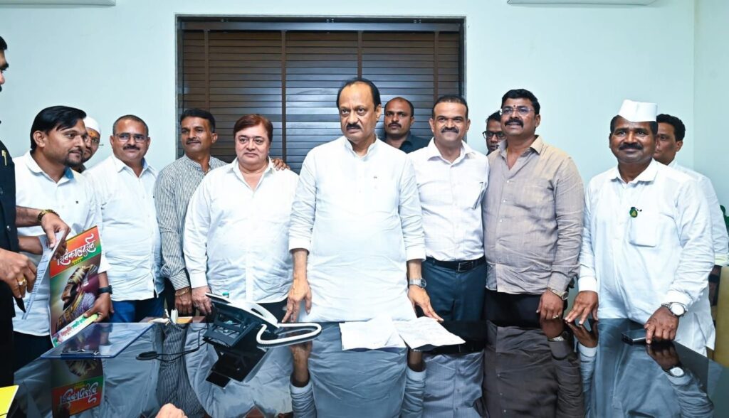 इगतपुरीनामा न्यूज – इगतपुरी नगरपरिषद निवडणुकीच्या पार्श्वभूमीवर आमदार हिरामण खोसकर यांच्यासह तालुक्यातील पदाधिकाऱ्यांनी राज्याचे उपमुख्यमंत्री तथा राष्ट्रवादी काँग्रेस पक्षाचे राष्ट्रीय अध्यक्ष अजित पवार यांची भेट घेतली. यावेळी तासभर झालेल्या चर्चेत ना. पवार यांनी इगतपुरीची माहिती जाणुन घेतली. गत २५ वर्षांपासून इगतपुरी नगरपरिषदेवर शिवसेना उबाठा गटाची सत्ता असून त्यांनी शहराचा विकास न केल्याने नागरिक त्रस्त आहेत. अनेक समस्यांनी ग्रासलेल्या शहराकडे अजित दादांनी स्वतः लक्ष घालावे अशी विनंती आमदार हिरामण खोसकर, माजी उपनगराध्यक्ष व प्रदेश उपाध्यक्ष फिरोज पठाण, प्रदेश सरचिटणीस गोरख बोडके, ज्ञानेश्वर लहाने, ज्ञानेश शिरोळे, संजय खातळे यांनी केली. सौंदर्याने नटलेल्या इगतपुरीच्या विकासासाठी मी कटिबद्ध असून यावेळेस नक्कीच बदल घडवणार असे पदाधिकाऱ्यांना आश्वासित केले. यावेळी जिल्हा उपाध्यक्ष महेश नाना शिरोळे, युवा नेते मंगेश शिरोळे, शहराध्यक्ष वसीम सय्यद आदी उपस्थित होते.