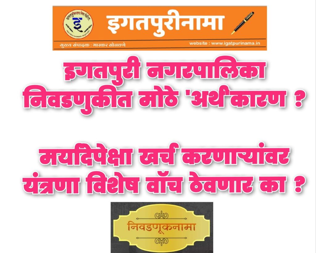 भास्कर सोनवणे : इगतपुरीनामा न्यूज – इगतपुरी नगरपालिका निवडणुकीसाठी उमेदवारांच्या खर्चावर निवडणूक आयोगाचे विशेष लक्ष असणार आहे. काही जागरूक नागरिक निवडणूक यंत्रणेकडे याप्रकरणी निनावी तक्रारी करणार असल्याचे शहरात चर्चिले जात आहे. निवडणूक काळात मद्याचा महापूर येऊन युवापिढीला व्यसनी होण्यासाठी पूरक ठरणाऱ्या ‘अर्थकारणामुळे’ खर्चावर कटाक्षाने लक्ष घालण्याची प्रमुख मागणी आहे. त्यातच एवढ्या कमी पैशात निवडणूक लढवणं शक्य नाही, असं उमेदवारांचं म्हणणं आहे. प्रतिस्पर्धी उमेदवारांकडून मोठ्या प्रमाणावर “गंगाजळी” वाहणार असल्याने मागे राहून चालणार नसल्याची भावना इच्छुक व्यक्त करतात. पण कमी पैशातही निवडणूक लढवता येणं शक्य आहे, असं मत ज्येष्ठ नागरिकांनी व्यक्त केलंय. मतदारांना पैसे वाटायची सवय आणि युवकांमध्ये व्यसनाधिता वाढण्याची चटक राजकीय पक्षांनीच लावली असा या अनुभवी नागरिकांचा आरोप आहे. इगतपुरी ‘क’ वर्ग नगरपालिका असल्याने नगरसेवक पदाच्या उमेदवारासाठी निवडणूक खर्चाची मर्यादा २ लाख ५० हजार रुपये आहे तर थेट नगराध्यक्ष पदाच्या उमेदवारांसाठी ७ लाख ५० हजार रुपयांची मर्यादा आहे. ह्यावेळी खर्चाची मर्यादा वाढवून मिळालेली असतांनाही यामध्ये आणखी वाढ अत्यावश्यक असल्याची अपेक्षा सर्वच पक्षाच्या उमेदवारांची आहे. एखाद्या उमेदवाराला प्रचारासाठी दिवसभर गाडी फिरवायची म्हटली तरी त्यासाठी ४ हजार रुपये खर्च येतो. प्रचाराची ही गाडी निवडणूक काळात फिरवायची तर १ लाख रुपये गाडीसाठीच खर्च होणार, प्रचारसभा, पत्रकांचं प्रिंटिंग, पोस्टर्स सोशल मीडिया आणि कार्यकर्त्यांच्या चहापानाचा खर्च एवढं सगळं लक्षात घेता ही खर्चाची मर्यादा कमीच पडते. ह्यातच उमेदवारांचे निवडणूक खर्चाचे खाते “मेंटेन” करणे मोठे जिकिरीचे बनणार आहे. ह्यातच प्रत्येक उमेदवार पुढे येऊ न शकणारे अनेक खर्च करीत असल्याने निवडणूक यंत्रणा त्याकडे कटाक्षाने लक्ष घालणार असल्याचे संकेत मिळाले आहेत. उमेदवारांचं हे म्हणणं काही ज्येष्ठ नागरिकांना मात्र पटतच नाही. मतदारांना पैसे वाटून मतं विकत घ्यायची सवय राजकीय पक्षांनीच लावली. त्यामुळेच हा खर्च वाढतो असे ८० वर्षीय नागरिकाने व्यक्त केले.