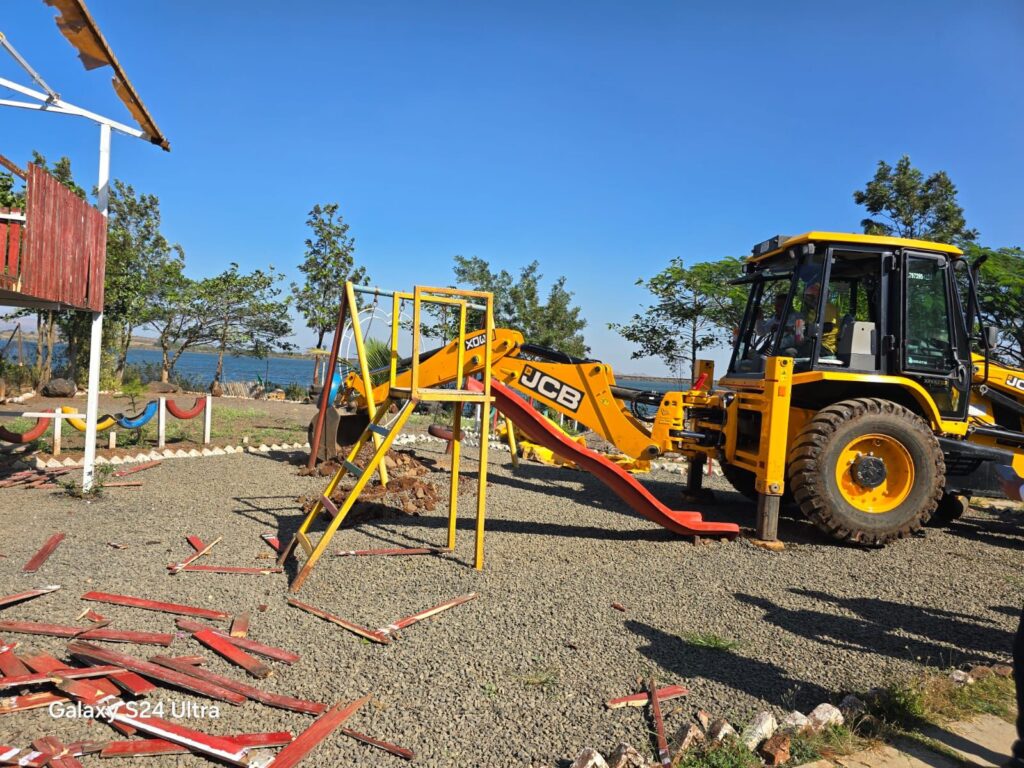 इगतपुरीनामा न्यूज – राज्याचे जलसंपदा मंत्री ना. डॉ. राधाकृष्ण विखे पाटील (गोदावरी व कृष्णा खोरे) यांच्या धरण व कालव्यांवरील अतिक्रमण काढण्याबाबतच्या सूचनेनुसार नाशिक पाटबंधारे विभागाने जलसंपदा विभागाच्या जागेतील अतिक्रमण काढण्यासाठी पथक तयार करण्याचे आदेश दिले आहेत. त्यानुसार कश्यपी धरणापासून कार्यवाहीला सुरवात करण्यात आली. आता इगतपुरी तालुक्यात भावली, मुकणे, दारणा, वाकी खापरी आणि नाशिक तालुक्यातील गंगापूर आदी धरण परिसरातील अतिक्रमण काढण्याची कार्यवाही लवकरच टप्प्याटप्प्याने सुरु केली जाणार आहे. अतिक्रमण करणाऱ्यांनी शक्य तेवढ्या लवकर स्वतःहून अतिक्रमण काढून पाटबंधारे विभागाला सहकार्य करावे असे आवाहन नाशिक पाटबंधारे विभागाच्या कार्यकारी अभियंता सोनल शहाणे यांनी केले आहे. अतिक्रमण न काढल्यास होणाऱ्या संभाव्य नुकसानीला जलसंपदा विभाग जबाबदार राहणार नाही असेही त्यांनी कळवले आहे. दरम्यान आज कश्यपी धरणावरील कैलास बेंडकुळे यांचे कश्यपी हॉटेल शासकीय जलसंपदाच्या दीड एकर जागेतील सर्व अतिक्रमण काढण्यात आले. कश्यपी धरणाच्या बुडीत क्षेत्राला लागून गिरणारे हरसुल रोडला लागून असलेले हॉटेल क्रूज यांचेही अतिक्रमण काढण्यात आले, हॉटेल कश्यपी पिकनिक पॉईंटचे अतिक्रमण सुद्धा आज काढण्यात आले. धोंडेगाव शिवारातील शासकीय जलसंपदा विभागाच्या जमिनीवर अतिक्रमण केलेल्या सर्व हॉटेलचे अतिक्रमण जलसंपदा विभागाच्या अधिकारी व कर्मचाऱ्यांमार्फत काढण्यात आले आहे.