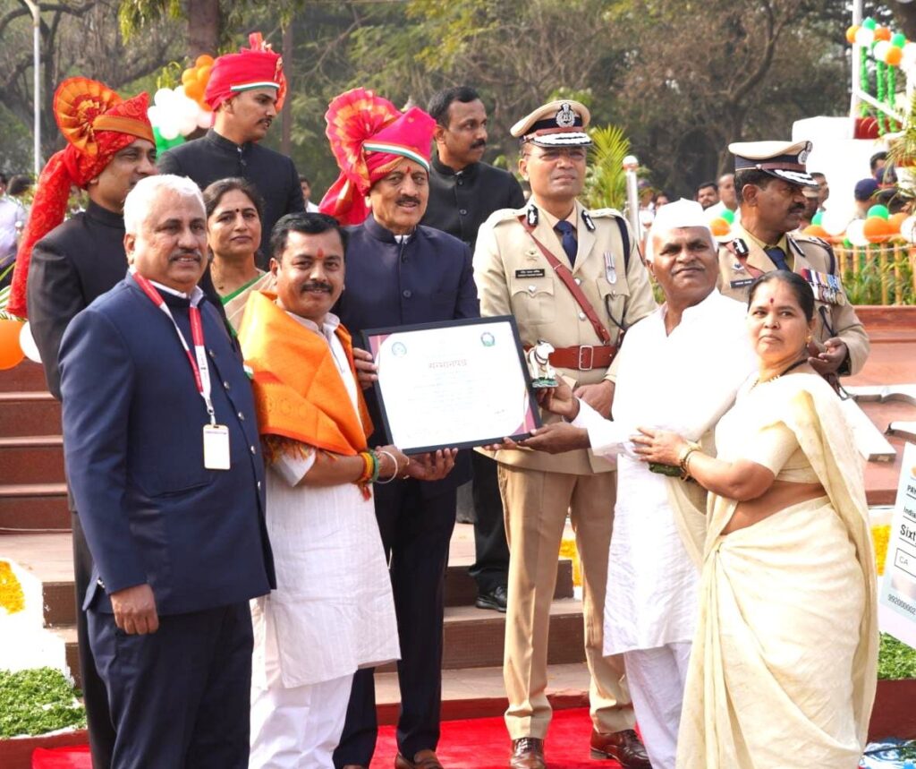 इगतपुरीनामा न्यूज – देशी गोवंश संवर्धन, गोसंरक्षण व गोसेवा क्षेत्रात गेल्या अनेक वर्षांपासून सातत्यपूर्ण, निस्वार्थ आणि उल्लेखनीय कार्य करणारे इगतपुरी तालुक्यातील नांदडगाव येथील गोकुळधाम गोसेवा प्रतिष्ठान आहे. त्यांना शासनाच्या महाराष्ट्र गोसेवा आयोग, पुणे यांच्या वतीने राबविण्यात येणाऱ्या महाराष्ट्र शुद्ध देशी गोवंश सन्मान योजना २०२५-२६ अंतर्गत जिल्हास्तरीय पुरस्काराने सन्मानित करण्यात आले आहे. प्रजासत्ताक दिनाच्या पार्श्वभूमीवर आयोजित सन्मान सोहळ्यात या संस्थेस श्रेष्ठ राजदूत म्हणून गौरविण्यात आले. हा मानाचा पुरस्कार पालकमंत्री ना. गिरीश महाजन यांच्या हस्ते प्रदान करण्यात आला. यावेळी महाराष्ट्र गोसेवा आयोगाचे अध्यक्ष शेखर मुंदडा, सचिव डॉ. शामकांत प्रभाकर पाटील, आयुक्त (पशुसंवर्धन) डॉ. प्रविणकुमार देवरे, विभागीय आयुक्त, जिल्हाधिकारी, जिल्हा परिषदेचे अधिकारी, पशुसंवर्धन विभागाचे अधिकारी तसेच विविध सामाजिक संस्थांचे प्रतिनिधी मोठ्या संख्येने उपस्थित होते. गोकुळधाम गोसेवा प्रतिष्ठानचे अध्यक्ष दिनकर शांताराम खातळे व उपाध्यक्ष शरद हरिभाऊ फडोळ यांना महाराष्ट्र गोसेवा आयोगामार्फत सन्मानपत्र प्रदान करण्यात आले. देशी गोवंशाचे संगोपन, शुद्ध देशी गायींचे संवर्धन, गोमातांच्या आरोग्याची शास्त्रीय पद्धतीने काळजी, गोसेवेविषयी समाजामध्ये जनजागृती करण्यासाठी संस्थेने केलेल्या कार्याची दखल घेत हा सन्मान प्रदान करण्यात आल्याचे यावेळी नमूद करण्यात आले.