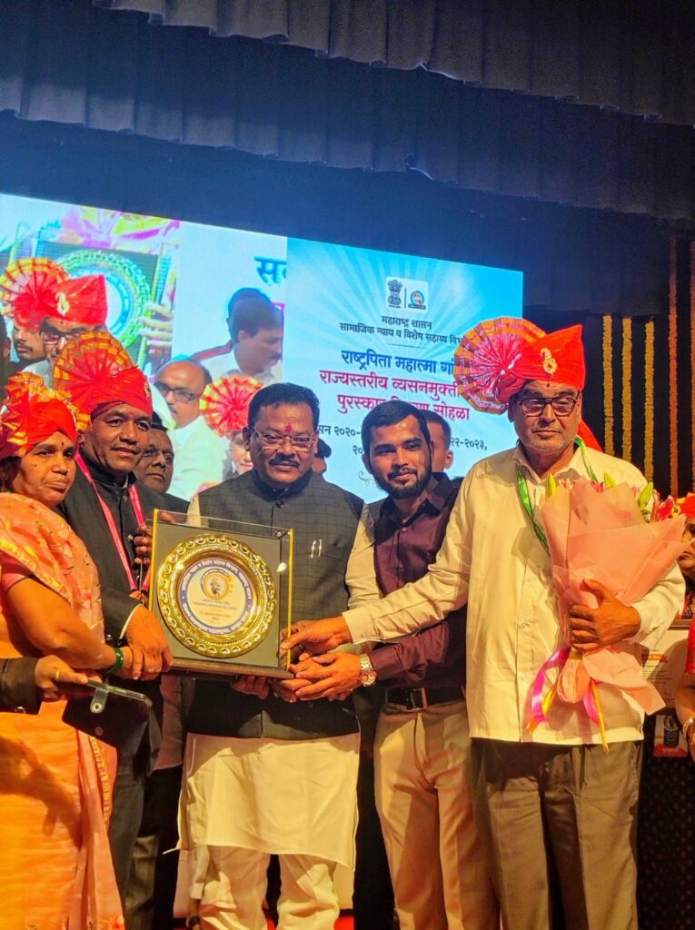 इगतपुरीनामा न्यूज – व्यसनमुक्ती क्षेत्रात उल्लेखनीय कार्य करणाऱ्या इगतपुरी येथील कै. आण्णासाहेब नारायण पाटील बहुउद्देशीय संस्था संचलित मन:शांती व्यसनमुक्ती केंद्राला राज्यस्तरीय सन्मान प्राप्त झाला आहे. संस्था पातळीवरील पुरस्कार म्हणून इगतपुरीच्या मन:शांती व्यसनमुक्ती केंद्राला सन्मानचिन्ह व रोख ३० हजार रुपये देऊन गौरविण्यात आले. शासकीय कर्मचारी गटातून संस्थेचे संचालक हुकुमचंद दत्तात्रय पाटील यांना “राष्ट्रपिता महात्मा गांधी राज्यस्तरीय व्यसनमुक्ती सेवा पुरस्कार” प्रदान करण्यात आला. त्याचे सन्मानचिन्ह व रोख रुपये १५ हजाराचे पारितोषिक देण्यात आले. मुंबई येथील यशवंतराव चव्हाण प्रतिष्ठान येथे हा पुरस्कार सोहळा थाटामाटात पार पडला. सामाजिक न्याय विभागामार्फत आयोजित या कार्यक्रमात राज्यभरातील १३ संस्थांसह व्यसनमुक्ती क्षेत्रात उल्लेखनीय कामगिरी करणाऱ्या मान्यवरांचा गौरव करण्यात आला.