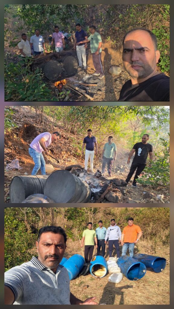 एलसीबीकडून वाडीवऱ्हे, घोटी भागात गावठी दारूच्या हातभट्ट्या उध्वस्त : ५ लाख ५० हजाराचे रसायन, तयार गावठी तयार दारू आदी साहित्य केले नष्ट