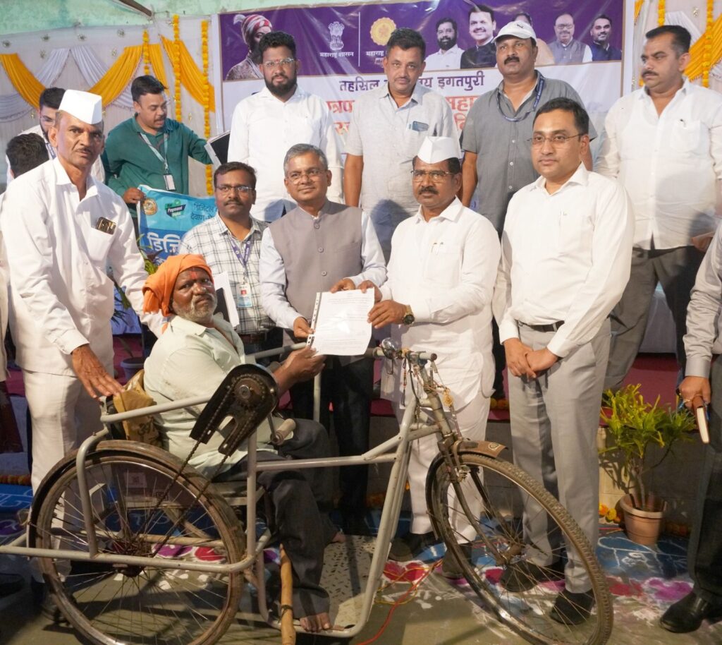 भास्कर सोनवणे : इगतपुरीनामा न्यूज – महसूल विभागाच्या विविध सेवा नागरिकांना एकाच ठिकाणी सुलभ व पारदर्शक पद्धतीने उपलब्ध करून देण्यासाठी इगतपुरीसह राज्यभरात एकाच वेळी विशेष शिबिरांचे आयोजन करण्यात येत आहे. तंत्रज्ञानाच्या प्रभावी वापरातून नागरिकांच्या दैनंदिन अडचणी दूर करून आवश्यक सेवा उपलब्ध करुन देण्यासाठी शासन कटिबद्ध आहे असे प्रतिपादन अपर मुख्य सचिव (महसूल) विकास खारगे यांनी केले. कावनई ( ता. इगतपुरी ) येथे आयोजित छत्रपती शिवाजी महाराज महाराजस्व समाधान शिबिर कार्यक्रमात अपर मुख्य सचिव श्री. खारगे बोलत होते. यावेळी आमदार हिरामण खोसकर, विभागीय आयुक्त डॉ. प्रवीण गेडाम, अपर जिल्हाधिकारी देवदत्त केकाण, सहाय्यक जिल्हाधिकारी तथा इगतपुरी त्र्यंबकेश्वरचे उपविभागीय अधिकारी डॉ. पवन दत्ता, उपजिल्हाधिकारी रवींद भारदे, इगतपुरीचे तहसीलदार अभिजीत बारवकर, भूमी अभिलेखचे उपसंचालक महेश इंगळे, माजी जि. प. सदस्य गोरख बोडके, निवासी नायब तहसीलदार धनंजय लचके, मंडळ अधिकारी हेमंतकुमार पोटींदे यांच्यासह विविध विभागांचे अधिकारी व कर्मचारी उपस्थित होते.