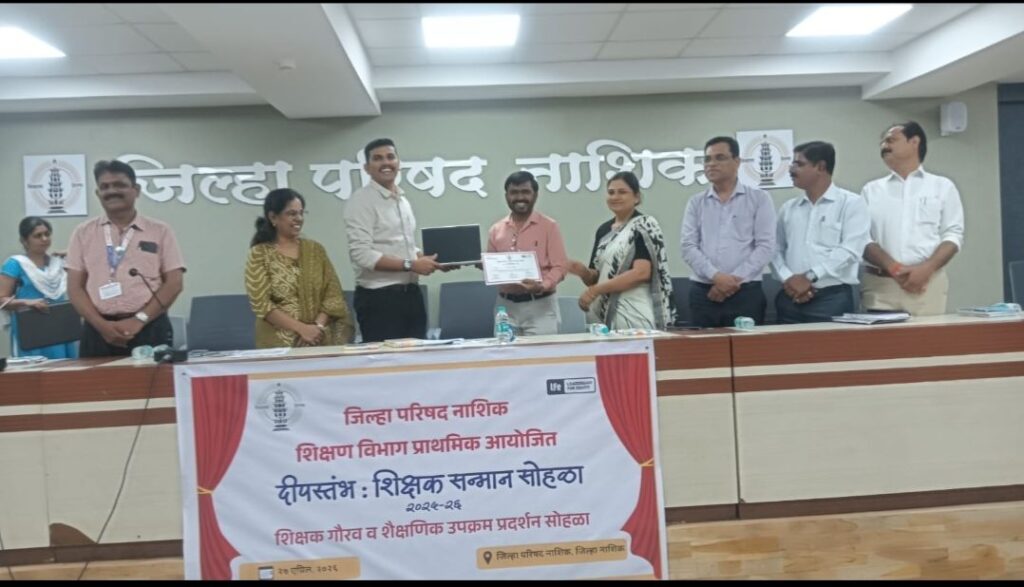 नाशिक जिल्ह्यातील शिक्षकांच्या नाविन्यपूर्ण शैक्षणिक कार्याचा गौरव करण्यासाठी नाशिक जिल्हा परिषदेच्या वतीने आयोजित ‘दीपस्तंभ : शिक्षक सन्मान सोहळा’ संपन्न झाला. मध्यवर्ती सभागृह, नवीन प्रशासकीय इमारत, जि. प. नाशिक येथे उत्साहपूर्ण वातावरणात हा कार्यक्रम पार पडला. जिल्ह्यातील विद्यार्थ्यांची शैक्षणिक गुणवत्ता वाढावी, शिक्षकांच्या अभिनव उपक्रमांना प्रोत्साहन मिळावे. यासह उत्कृष्ट कार्य करणाऱ्या शिक्षकांचा सन्मान व्हावा या उद्देशाने हा कार्यक्रम आयोजित करण्यात आला होता. सोहळ्यात उपक्रमशील शिक्षक, TEACH Tool अंतर्गत यशस्वी निरीक्षक, ‘लीडरशिप फॉर इक्विटी’ (LFE) संस्थेच्या निपुण अभ्यासवर्गातील प्रेरक शिक्षक, विविध शैक्षणिक उपक्रमांमध्ये उल्लेखनीय कामगिरी करणाऱ्या शिक्षकांचा गौरव करण्यात आला. यावेळी Computer Science Teacher Excellence Course उत्तम गुणांसह पूर्ण करणाऱ्या राज्यातील टॉप २० शिक्षकांना लॅपटॉप देऊन सन्मानित करण्यात आले. कार्यक्रमाला जिल्ह्यातील शिक्षक, केंद्रप्रमुख व शिक्षण विभागातील अधिकारी मोठ्या संख्येने उपस्थित होते. हा सोहळा जिल्ह्यातील शिक्षकांसाठी प्रेरणादायी ठरून शैक्षणिक गुणवत्ता वृद्धीस चालना देणारा ठरला.